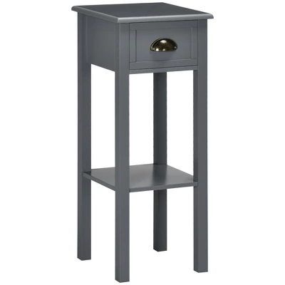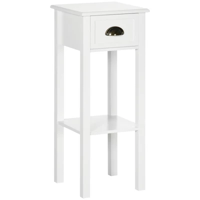 Add a beautiful accent piece to your home while giving yourself extra storage with this narrow end table from HOMCOM. Place the end table in your living room or bedroom to hold items you use daily or as a decorative display shelf. The drawer allows you to store small objects without getting lost. It’s compact enough to fit between those tiny spaces between your couch or bed and the wall. Add elegance and some extra storage with HOMCOM.
