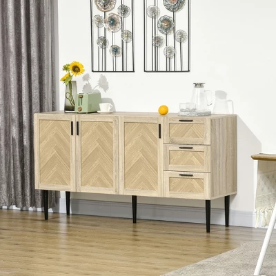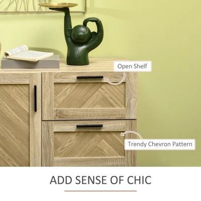 This storage cabinet by HOMCOM will help you keep all of your essential items organized and clutter-free. Its natural look with trendy chevron pattern door and metal base deliver a casual look to your living space. At the same time, the cupboards and drawers provide ample storage space for your daily accessories and utensils. Customize your home space with the interior adjustable shelf that moves to fit your needs.