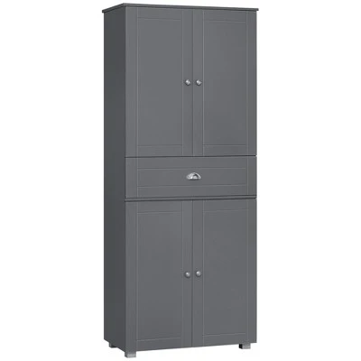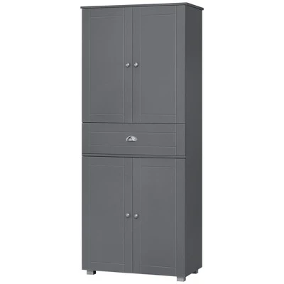 - Upgrade Your Storage: The 5-tier shelving of this food pantry cabinet gives you plenty of room for dishes, pots, and pans. The central drawer allows you to put away napkins, towels, and silverware. Keep organized behind the four doors so your items stay safe and dust-free.