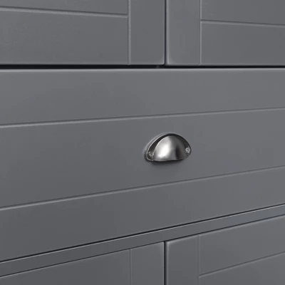 Organize your kitchenware and add more storage space with this kitchen cabinet. You can utilize the 2 framed door cabinets to store plates, cereal boxes, pots and pans. The shelves are adjustable to fit any of your storage needs. Middle drawers can be used to place forks, knives, and napkins. Featuring unique blister door panels and aluminum hardware, this kitchen pantry storage cabinet exudes charm and elegance. Elevate your home with HOMCOM.