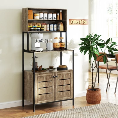 - Spacious Storage Options: Features two shelves, two tabletops, and two cabinets, making this coffee bar cabinet versatile for storing all your kitchen essentials, from microwaves to coffee makers, suitable for kitchen, living room, dining room, and more