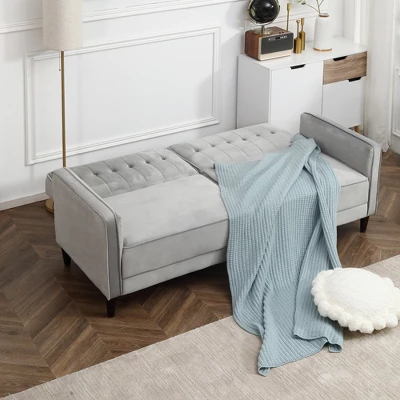 - QUALITY MATERIALS: This sofa bed couch’s plush velvet-touch polyester fabric is soft and comfortable, while wooden legs give it a solid foundation.