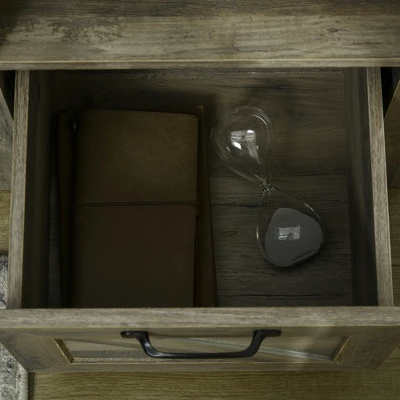 - Space Saver: This farmhouse end table has an open shelf, drawer, and large tabletop. The large storage capacity comfortably holds books, CDs, plants, snacks, or other personal items, minimizing clutter at the same time.