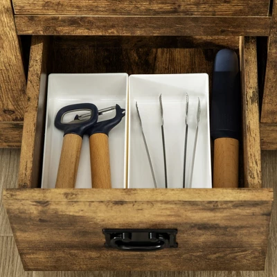 Quickly add that needed storage and get kitchen supplies clutter-free with this HOMCOM kitchen sideboard. With five drawers and two-door cabinets, the buffet sideboard provides a versatile storage solution. In addition, the adjustable shelf in each cabinet suits your items of different heights. Make your house a home with HOMCOM.