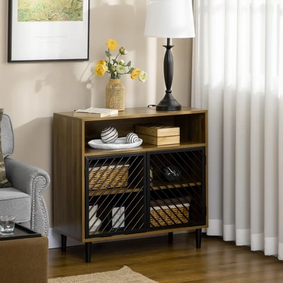 Need a little extra storage while fitting your home’s décor? Look no further than this HOMCOM industrial-style storage cabinet to fit your needs. The grated doors compliment the dark and light wood grain accents to match your modern living space, while the storage inside will keep your items neatly put away. Make your house feel more like home with HOMCOM.