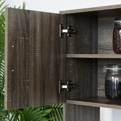 - Durable Material: Made of wood grain veneered P2 particleboard for durability and easy cleaning. The elevated base design protects the kitchen cupboard from moisture damage.