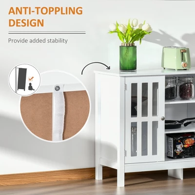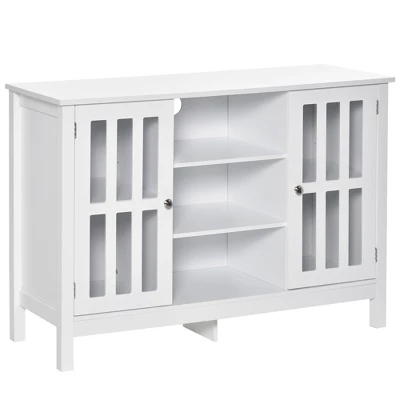 Creating a smart storage option has never been so easy. This sideboard from HOMCOM fits nicely with any décor and can be used in the dining room, or living room to create additional storage. The buffet cabinet comes with ample storage for daily accessories, utensils, dry goods and the framed glass doors add more beauty. Our media console stand also features a cable management hole for less mess when you have electronics to plug in. Upgrade your home storage today !