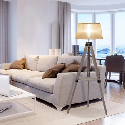 The multifunctional floor lamp of HOMCOM is combined with an extra shelf. With the fabric shade, it will bring you a peaceful and nice evening. The standing lamp small shelf can be used as a small side table or a display stand. You can put your phone or coffee cup on it conveniently or it can support some small ornaments. With the rustic tripod floor lamp style, it fits almost every decor in your home, perfect for office, bar, club, cafe, hotel, and restaurant.