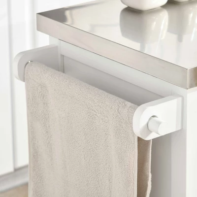 - Optimized Design: Featuring a timeless color palette and a sleek stainless steel countertop, this kitchen island on wheels exudes modern elegance. Its versatile aesthetic seamlessly integrates with a variety of decor styles in your kitchen, dining area and more.