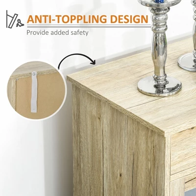 - QUALITY MATERIAL: This sideboard is made of particleboard and tempered glass for stability and easy cleaning. It features an anti-toppling design and can be fixed to the wall for safety.