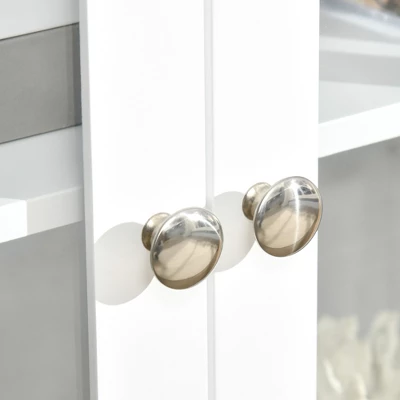 Quickly add that needed storage and get kitchen supplies clutter-free with this HOMCOM kitchen buffet cabinet. Framed tempered glass makes this sideboard buffet stylish and keeps the item without dust. The sideboard with two storage cabinets and a tabletop provides a versatile storage solution. Customize your home space with the interior adjustable shelves that move to fit your needs. This HOMCOM buffet sideboard will create a classic feel and grace your house.