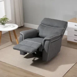 HOMCOM Manual Recliner Chair For Living Room Bedroom, Reclining Sofa Armchair With Footrest, Greige