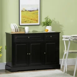 HOMCOM Sideboard, Buffet Cabinet With Adjustable Shelves, Credenza With 4 Glass Doors, White