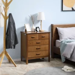 HOMCOM Tall Dresser For Bedroom, 5 Drawer Dresser, Chest Of Drawers With Bamboo Frame, Brown